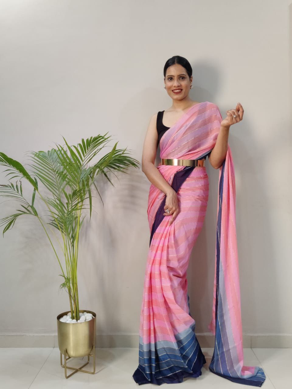 1-Min Ready to Wear saree in PREMIUM CHIFFON WITH ZARI PATTA