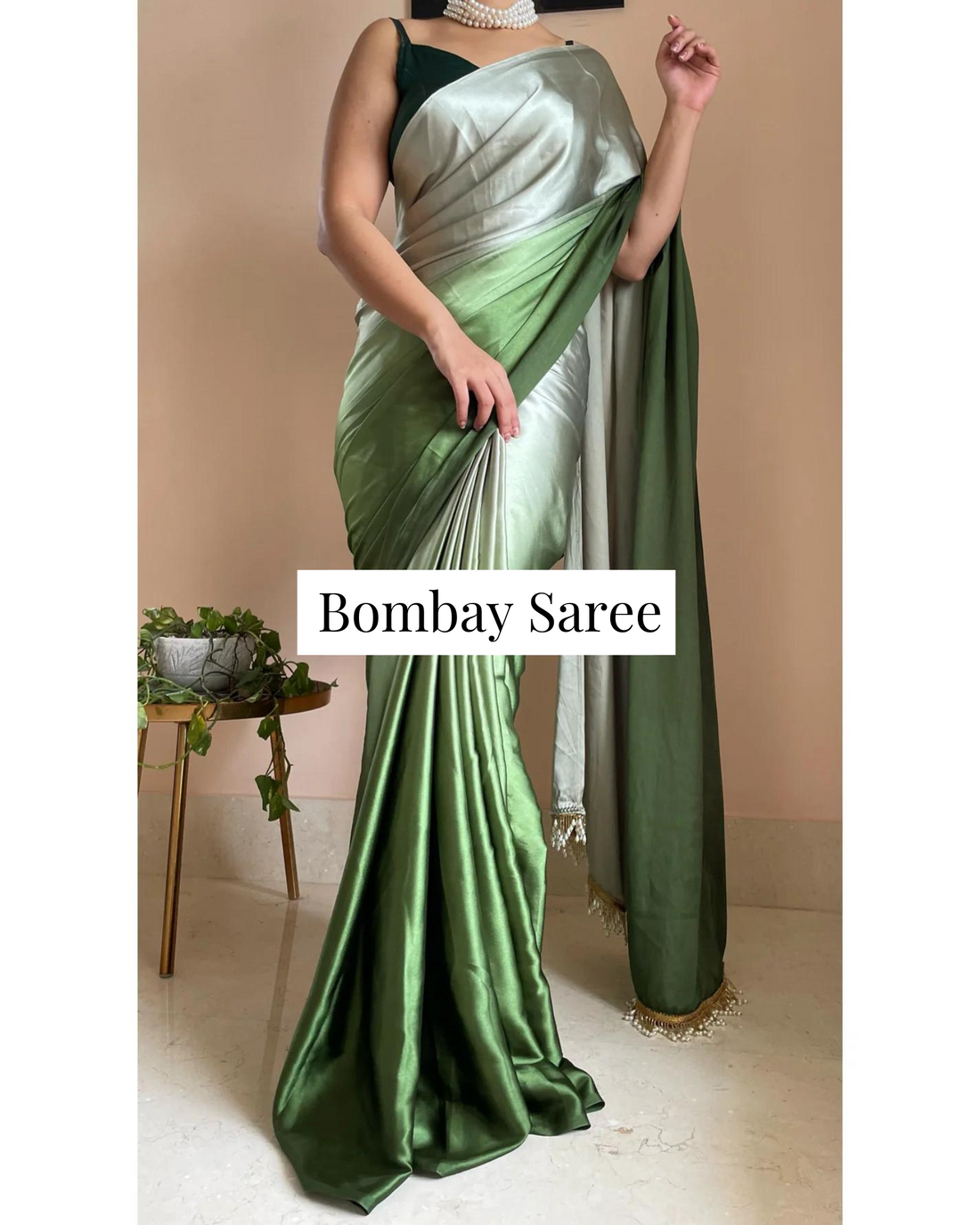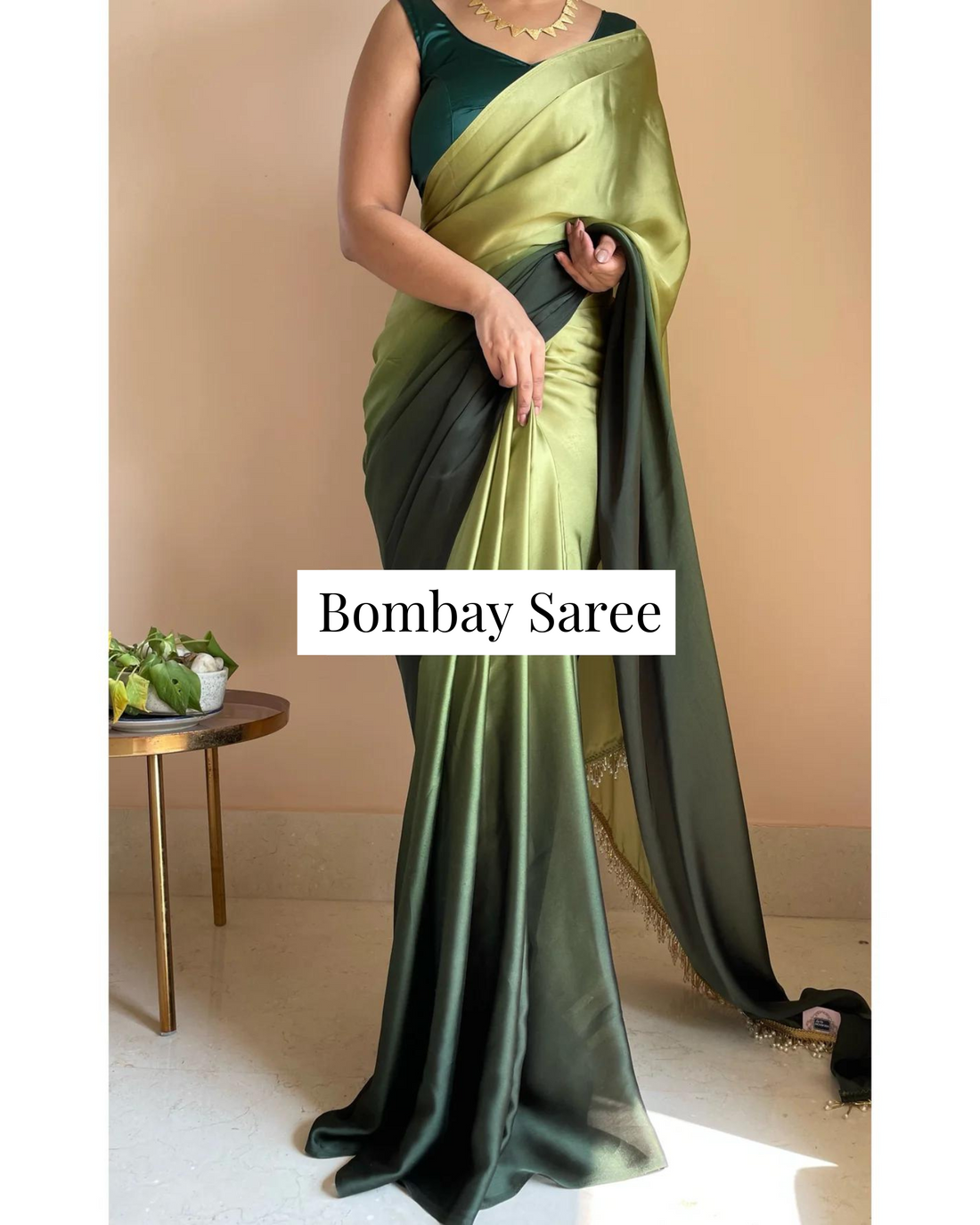 Green Hedge Ombre Satin Saree with Handmade Tassels on Pallu