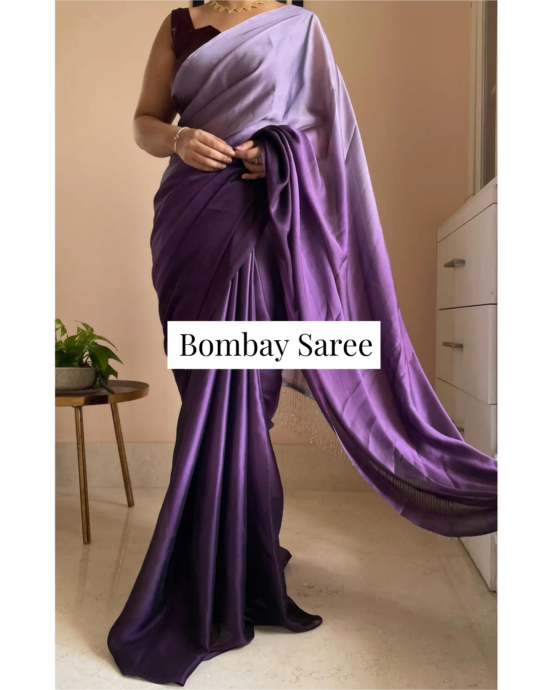 Amethyst Ombre Satin Saree with Handmade Tassels on Pallu