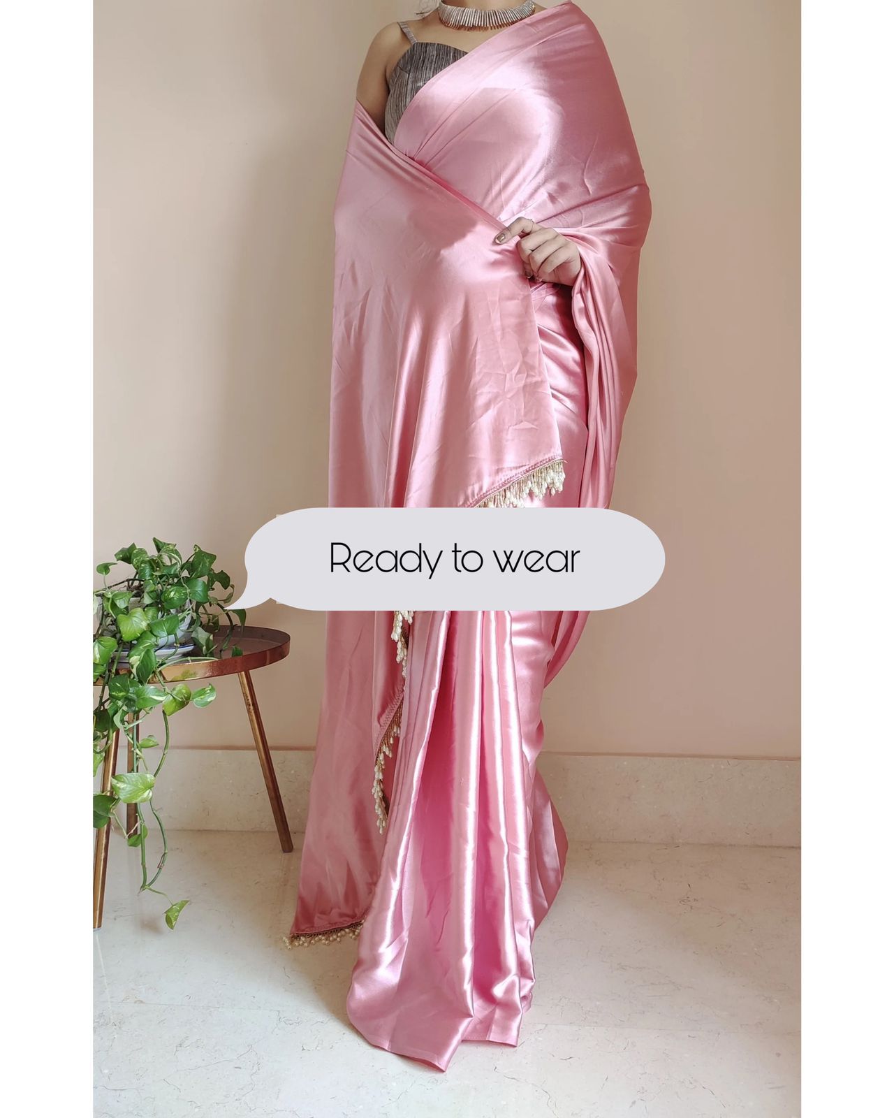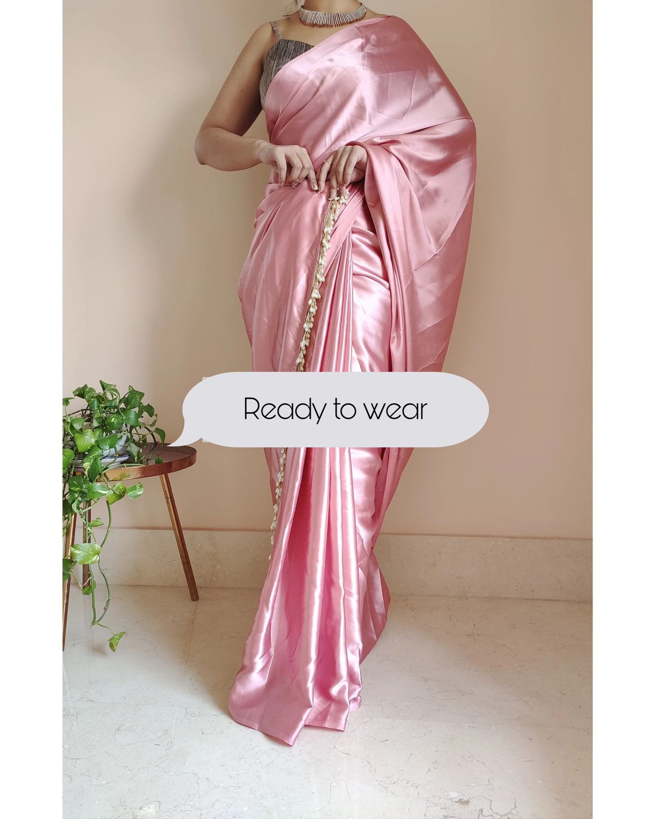 1-MIN READY TO WEAR Rosy Satin Silk Saree