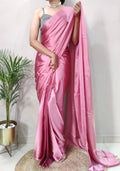 1-MIN READY TO WEAR SAREE IN DUSTY ROSE PREMIUM SATIN SILK