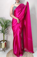 1-MIN READY TO WEAR SAREE IN HOT PINK PREMIUM SATIN SILK