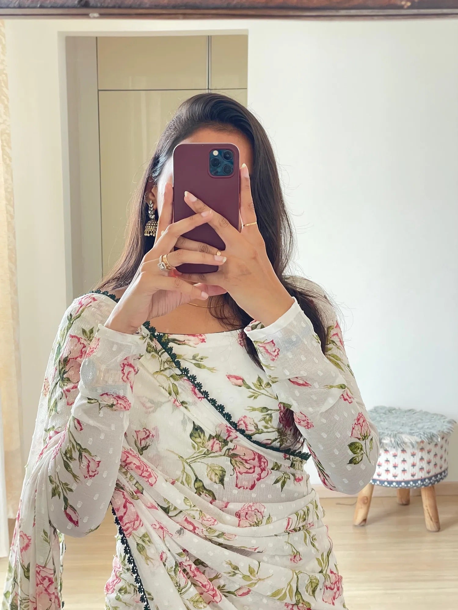 Saree : Ready to wear saree in premium imported butti Chiffon
