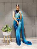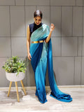 1-MIN READY TO WEAR SAREE IN MULTI BLUE PREMIUM CHINON SILK