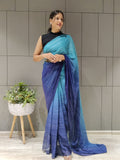 1-Min Ready to Wear Saree in Premium Nevy Blue Chiffon With Zari Patta