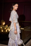 Citrus White Draped plazo & Pearl work Blouse with Cape