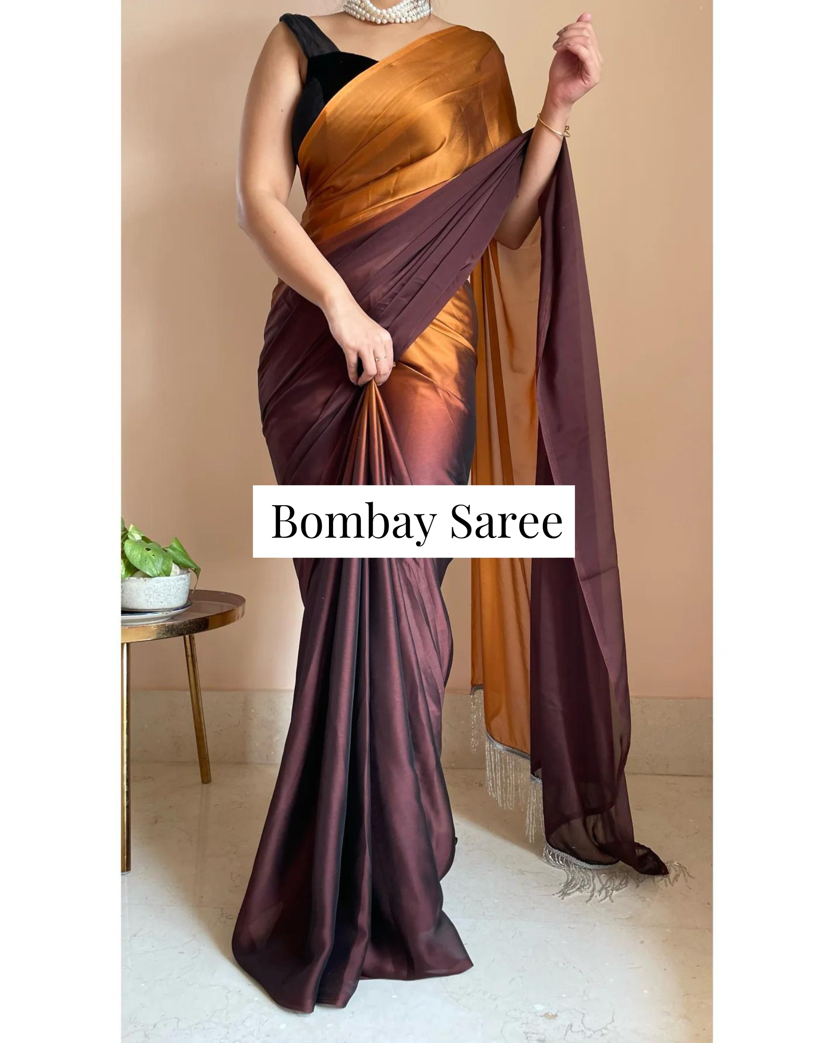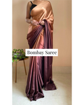 Coffee Eclair Ombre Satin Saree with Handmade Tassels on Pallu