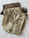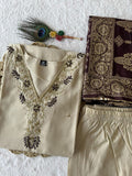 Cream colour Designers Kurti Pent Dupatta Set