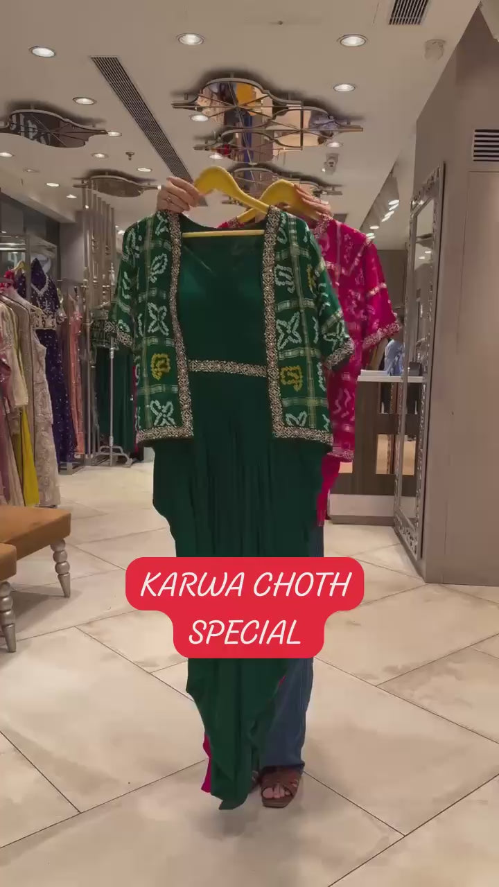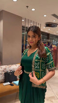 Turn heads in this statement-making cowl-style one-piece dress with matching shrug, crafted from luxurious printed chinon and beautifully highlighted with sequin embroidered lace. Featuring a flattering draped silhouette with a fixed sequin belt, this free-size, fully stitched outfit blends modern elegance with festive charm. The lightweight design ensures all-day comfort, making it the perfect pick for weddings, parties, and celebrations.