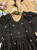 Elegant Cotton Anarkali Gown with Sequence Embroidery & Chanderi Dupatta