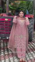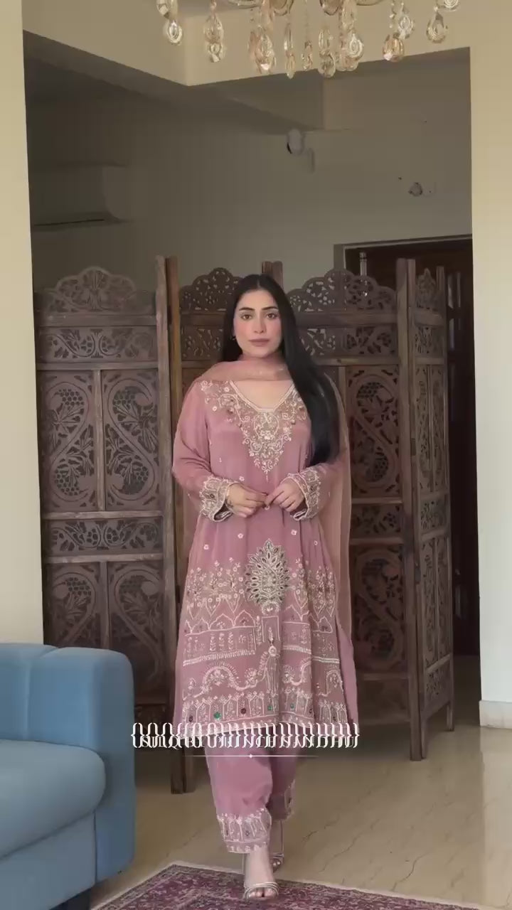 ✨ Elevate your ethnic wardrobe with this Exclusive Embroidered 3-Piece Pant Set designed for festive occasions, parties, and weddings. The set features a French Crepe top with elegant embroidery and Micro inner for comfort, a matching French Crepe pant with embroidery, and a lightweight Organza dupatta with lace border for a graceful finish. Perfect for women seeking style, comfort, and premium quality in one complete outfit. 🌸