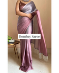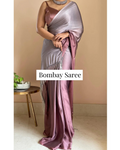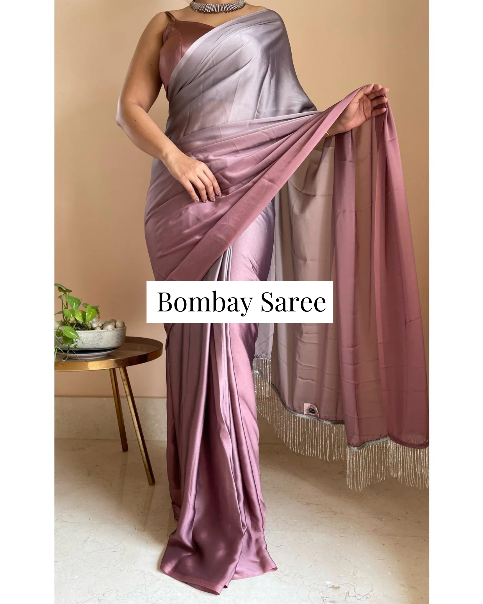 Grey-Rose Gold Ombre Satin Saree with Handmade Tassels on Pallu