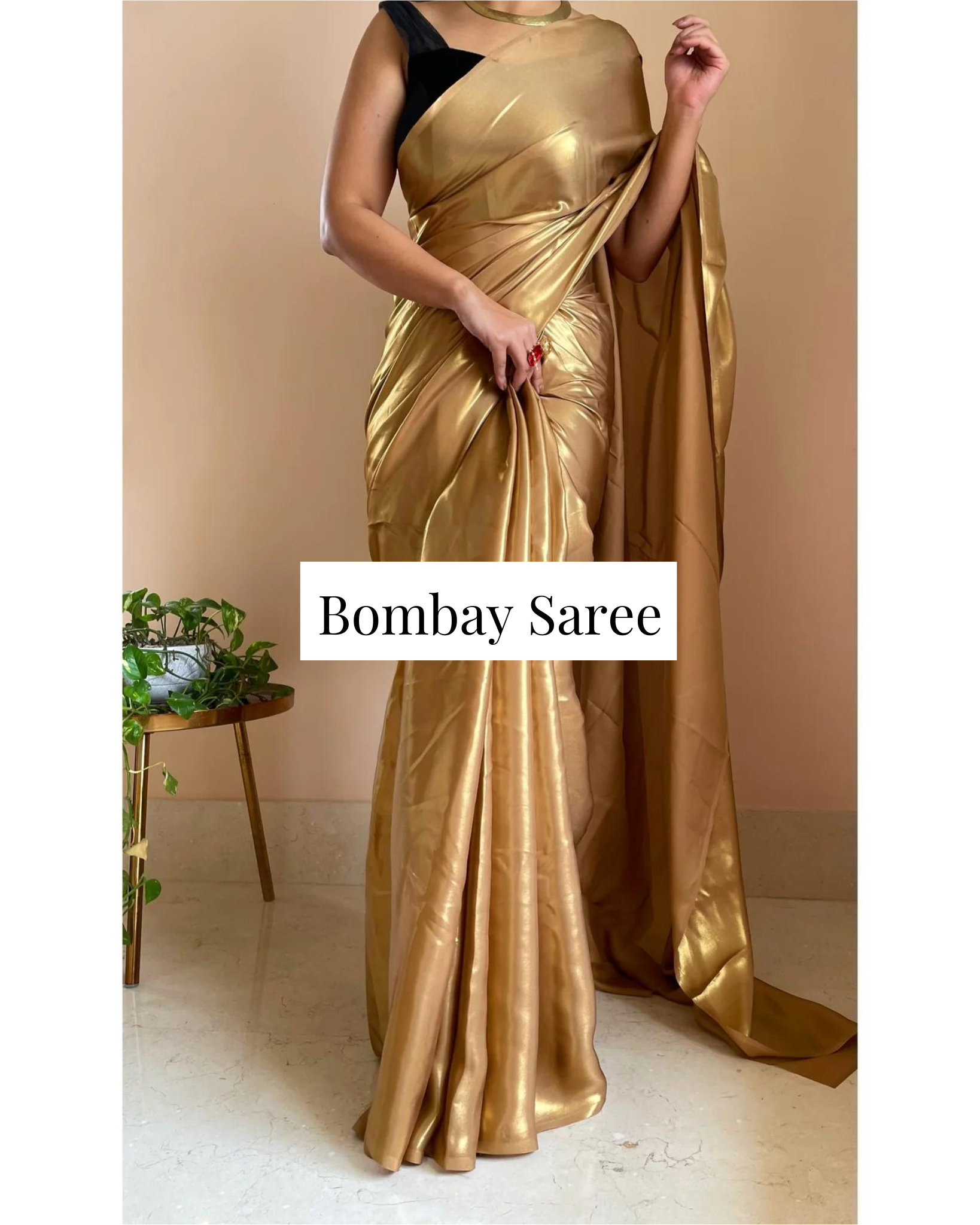 Molten Gold Shimmer Satin Saree