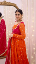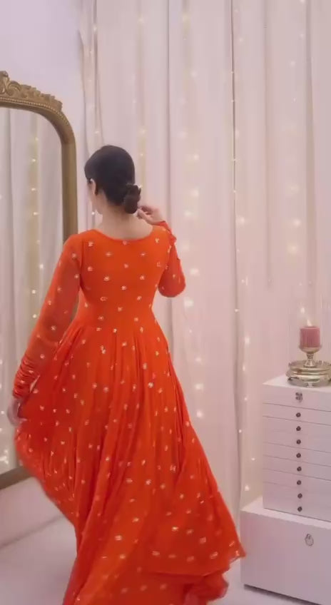 ✨ Step into elegance with our New Designer 4-Piece Party Wear Collection , crafted for weddings, festive celebrations, and special occasions. This luxurious set includes a Heavy Faux Georgette Anarkali Gown with stunning embroidery & sequins work, a matching Koti with Micro Cotton inner, a 2.20m embellished dupatta, and comfortable Micro Cotton pants. With a 7 mtr full flair gown and sizes from M to XXL, this set brings together glamour, comfort, and festive charm in one complete outfit. 🌸