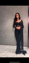 Fabric :- Georgette WORK :- Dual shade Sequence work with back patch lace border and piping |