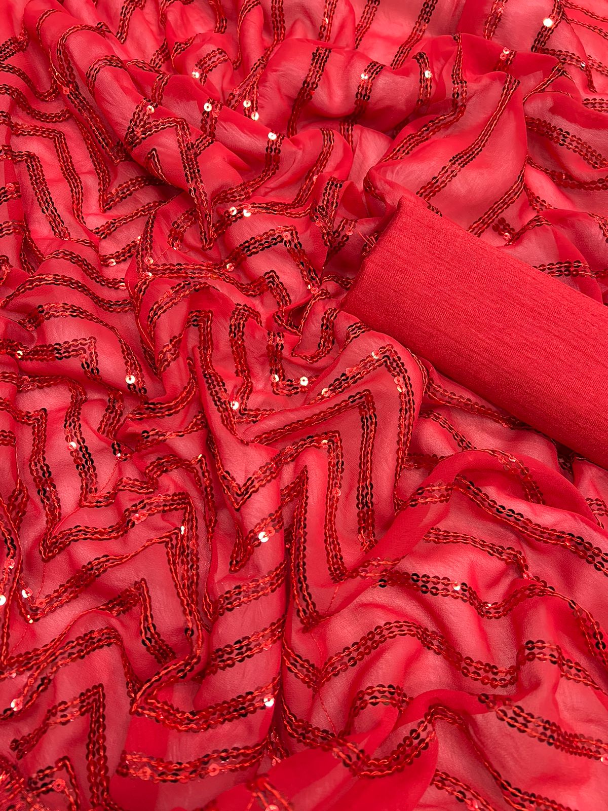 SAREE FABRIC: PREMIUM GEORGETTE FABRIC WITH Sequence Embroidery Work