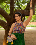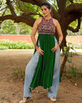"Radiate Elegance: Digital Print Cinon Top with Mirror Accents and Inner Cup Support"