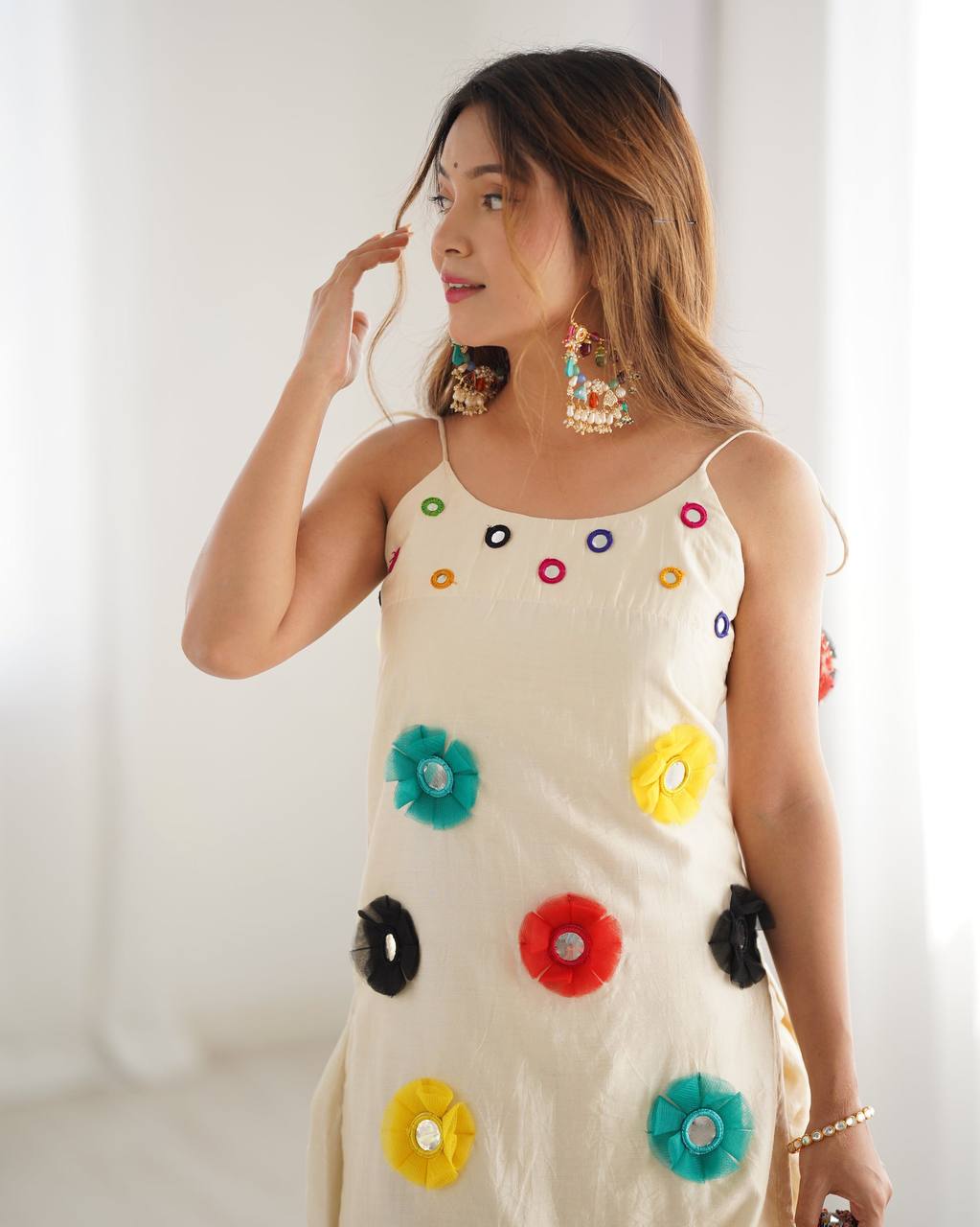 Soft Khadi Cotton With Mirror Khatli Work